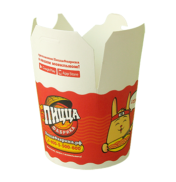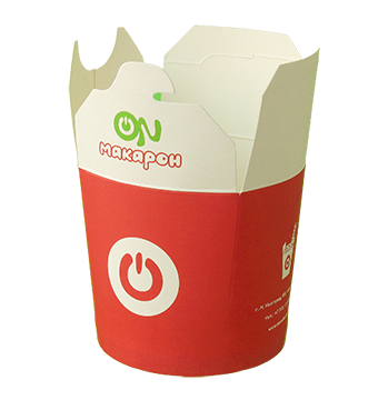 Круглая коробка-стакан в настоящий момент самый распространенный в мире вариант упаковки для WOK. В своё время мир завоевала коробока-оригами, которую все стали считать традицонной китайской упаковкой для лапши, хотя на самом деле такая упаковка была изобретена в США. Теперь популярность завоевала её модификация - круглый бумажный стакан с четырьмя клапанами и бумажным замком. Это вполне объяснимо в мире, который экономит каждую секунду времени. Готовая к использованию коробка-стакан или коробка-оригами, которую перед использованием нужно сначала собрать? Конечно стакан!