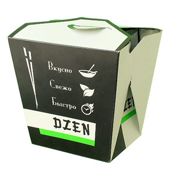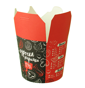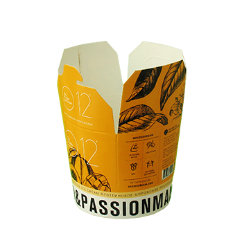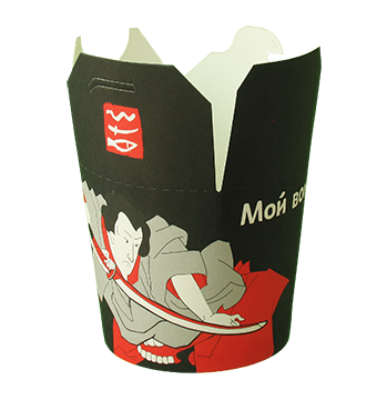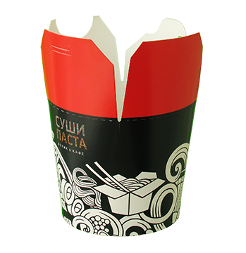 Круглая коробка-стакан в настоящий момент самый распространенный в мире вариант упаковки для WOK. В своё время мир завоевала коробока-оригами, которую все стали считать традицонной китайской упаковкой для лапши, хотя на самом деле такая упаковка была изобретена в США. Теперь популярность завоевала её модификация - круглый бумажный стакан с четырьмя клапанами и бумажным замком. Это вполне объяснимо в мире, который экономит каждую секунду времени. Готовая к использованию коробка-стакан или коробка-оригами, которую перед использованием нужно сначала собрать? Конечно стакан!