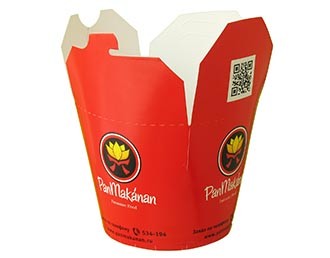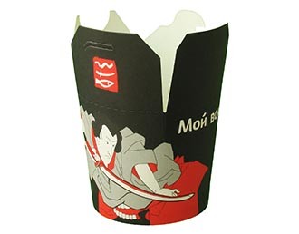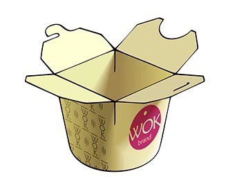 Коробка-оригами - это классика упаковки для блюд WOK. Конструкция ее была изобретена еще в конце 19 века в США, и с тех пор совершенствовались, в основном, только материалы, из которых изготавливается упаковка. Первоначально ее вырезали и складывали из промасленной бумаги. В дальнейшем развитие технологий позволило наносить на неё полиэтиленовое покрытие и полноцветное изображение. В конце концов, появление металлизированного покрытия сделало эту конструкцию идеально функциональной и дешёвой упаковкой для горячих блюд. Именно поэтому усовершенствованная коробка-стакан до сих пор не может полностью вытеснить оригами с рынка WOK.
